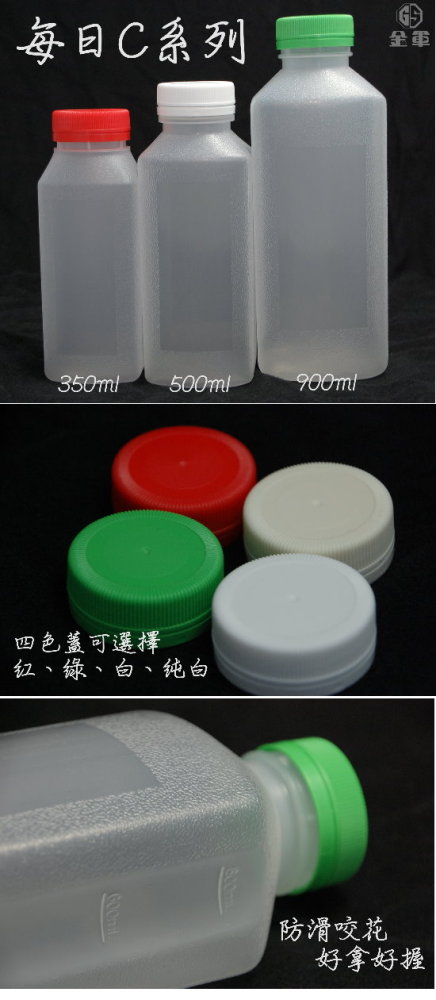 多樣設計:金軍塑膠企業有限公司提供每日C系列, PP材質飲料瓶 350ml的多樣化設計,如有需要請與我們聯絡,